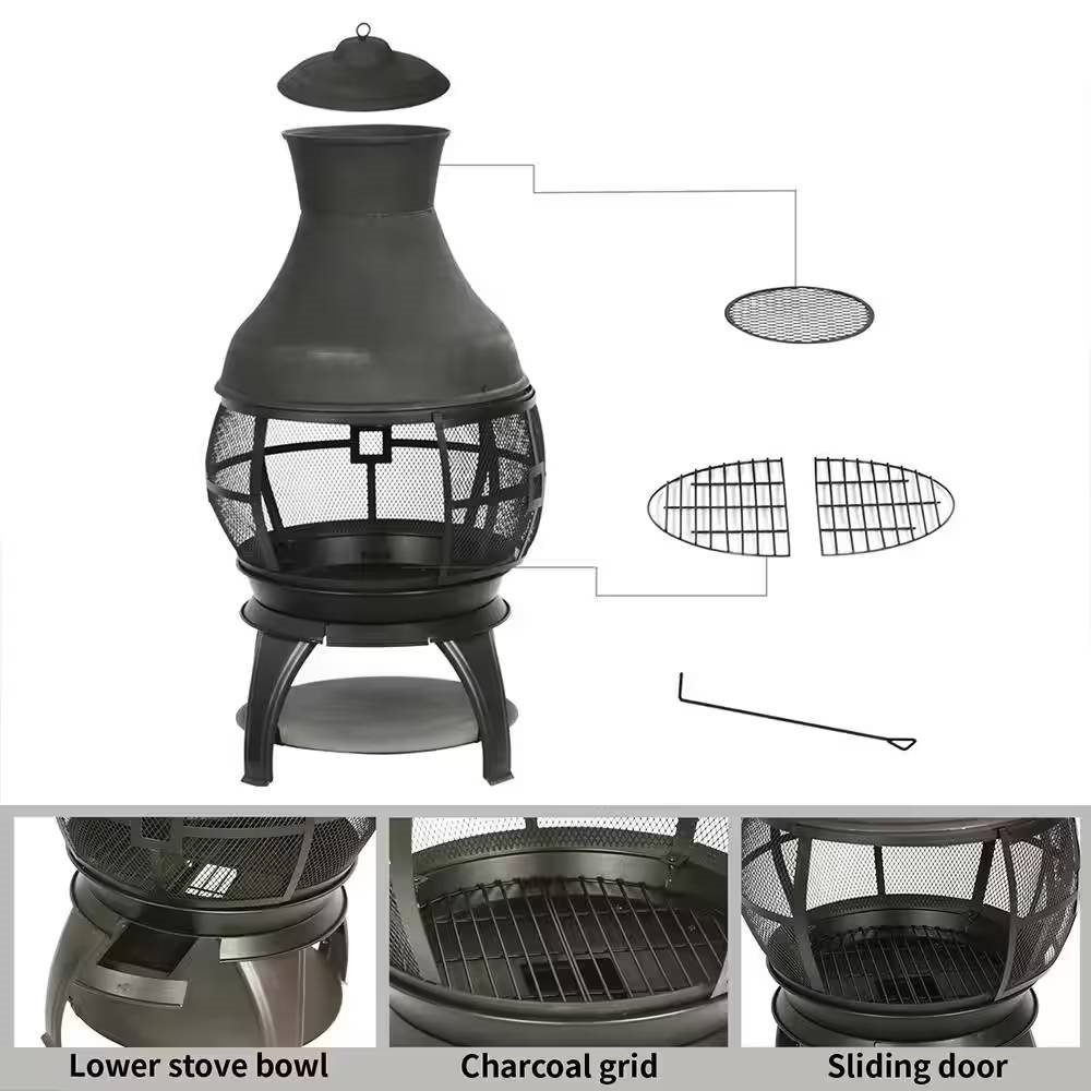 • 45-inch Black Cast Iron and Steel Outdoor Fire Pit Chimenea
