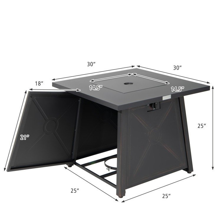 50,000 BTU Black Steel Square Portable LP Gas Propane Fire Pit Table
