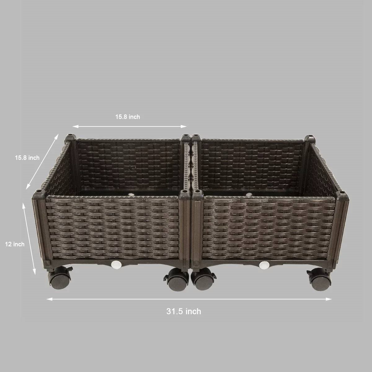 • Modern 2-Piece Indoor Outdoor Raised Garden Planter Box on Wheels in PP Rattan